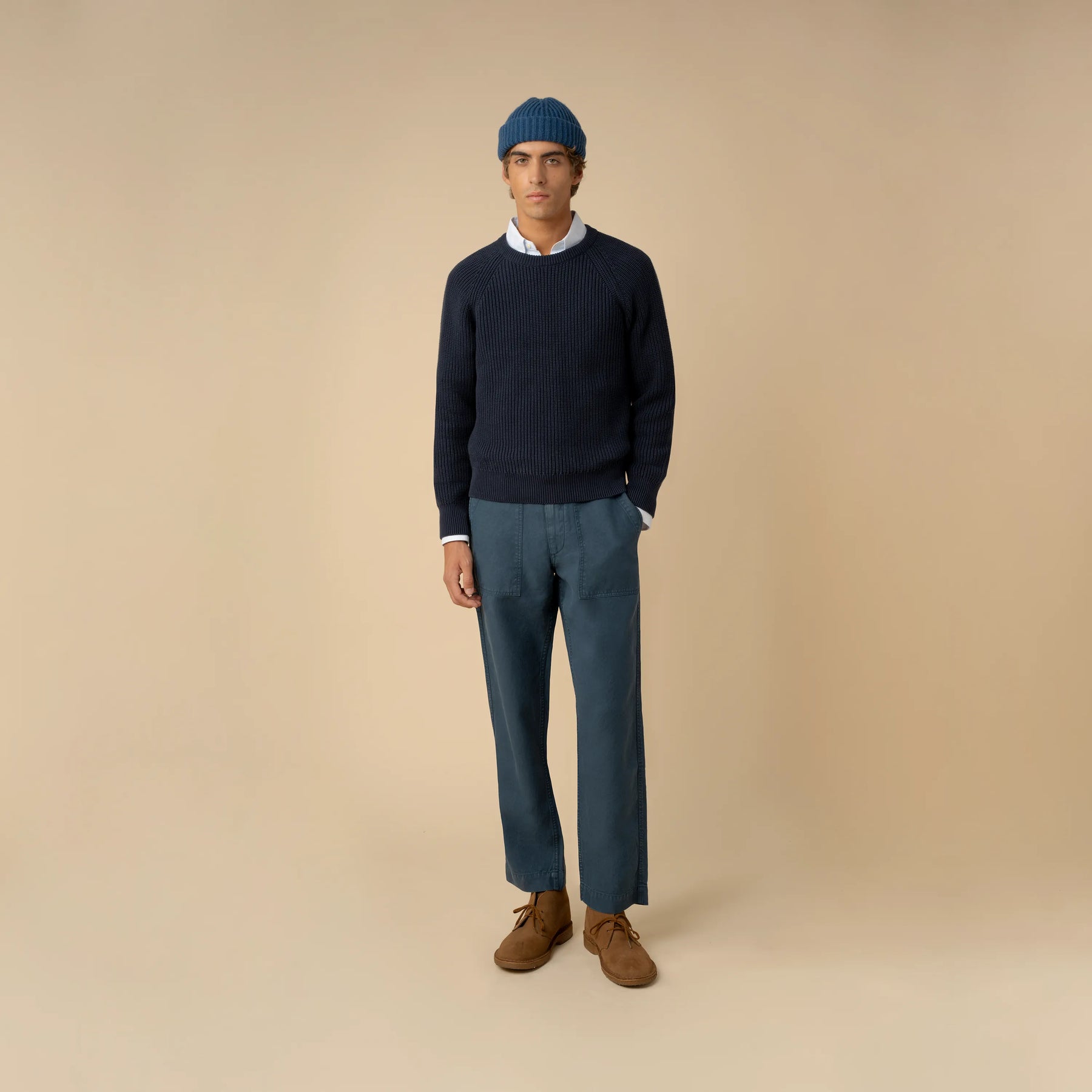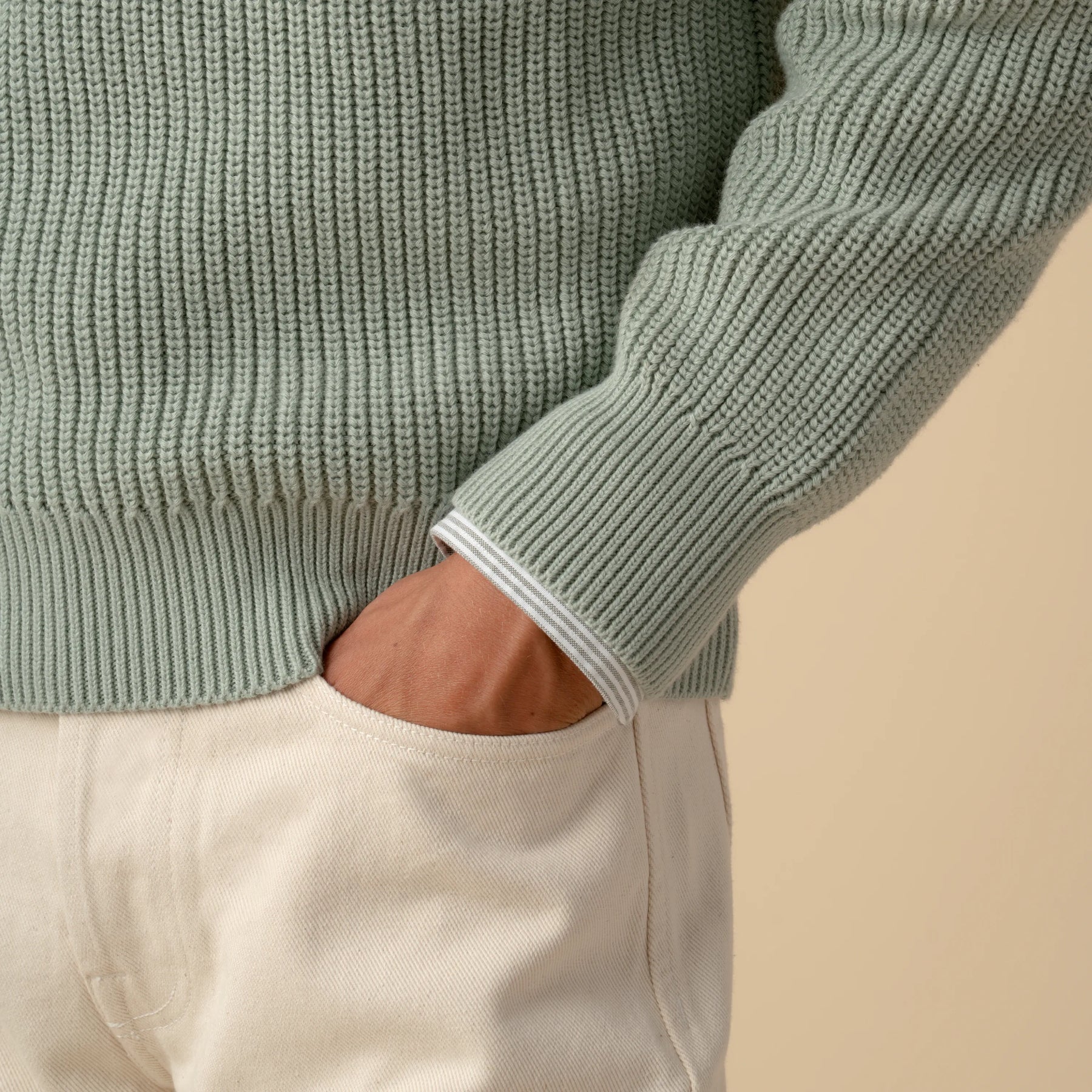 Made with best-in-class 100% organic cotton from Italy, this Sweater is carefully knitted at our specialized knitwear Portuguese supplier Madalena. With a half-cardigan fit and soft hand feel, it is the perfect staple to cozy you up 365 days a year.